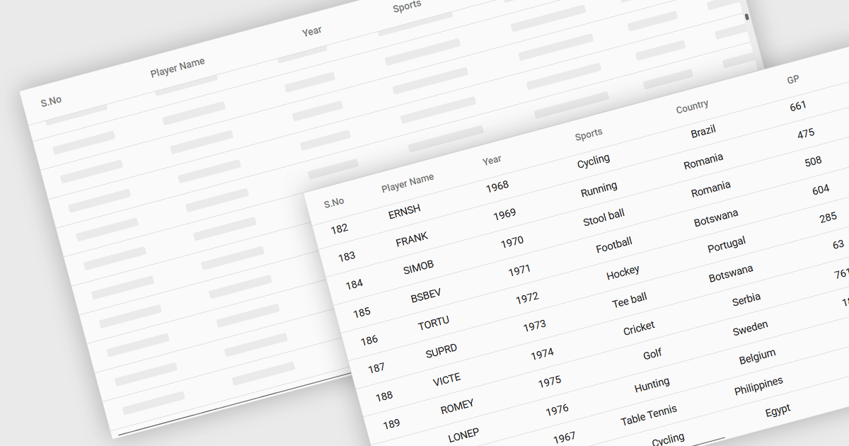 The ability to load items in a data grid as you scroll is a technique where content is rendered or fetched dynamically based on the user’s scroll position. Its purpose is to improve performance, and ultimately the user experience, when dealing with large datasets. This includes virtual scrolling, where the grid only renders rows that are currently visible in the viewport and reuses those same DOM elements as the user scrolls, and infinite scrolling (also known as endless scrolling), where additional data is loaded from a remote source in response to reaching the end of the currently displayed dataset. By minimizing the amount of data rendered or retrieved at any one time, this approach significantly reduces initial load times, improves responsiveness, and allows applications to scale efficiently.
