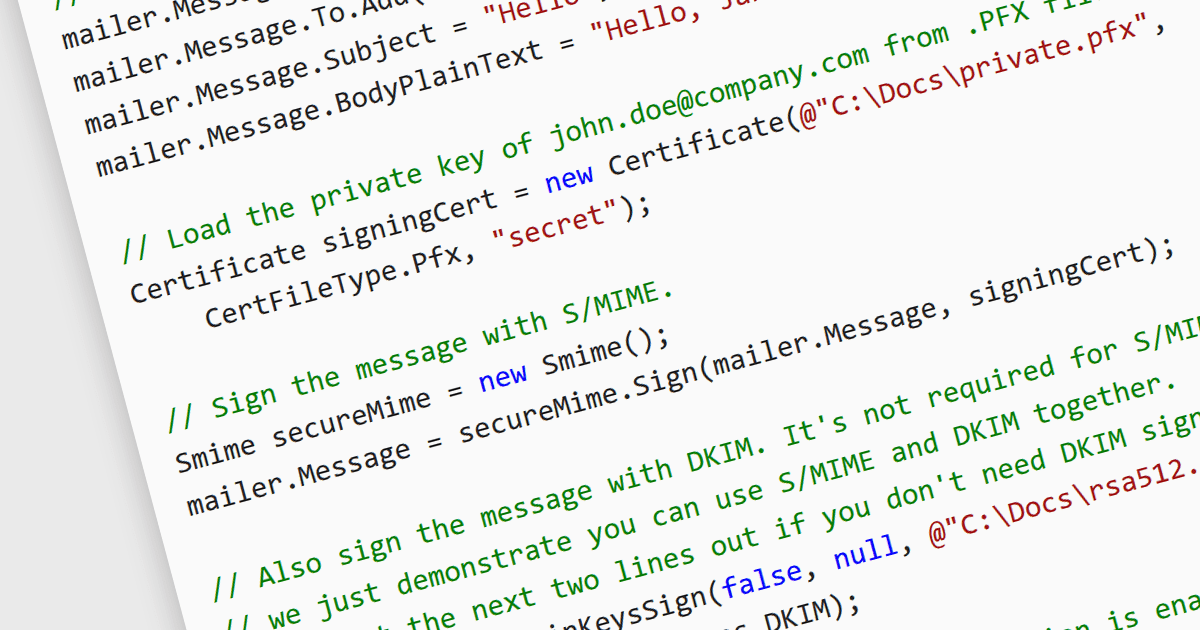 Several .NET Core communications and messaging components offer S/MIME support including: