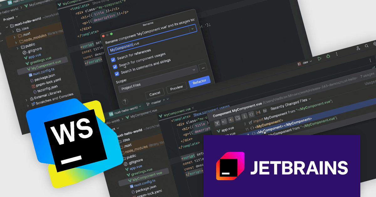 The WebStorm 2024.3 update introduces new in-editor hints for Vue, Svelte, and Astro components that provide immediate insights into component properties, improving workflow efficiency. Enhanced navigation features allow users to locate component usages across imports and templates, while the 'Show Component Usages' filter refines searches for more precise file references. The updated 'Rename' refactoring ensures consistent renaming across projects, making large-scale code adjustments faster and error-free. These improvements are ideal for developers managing complex applications who need accurate, project-wide control over component usage and naming.