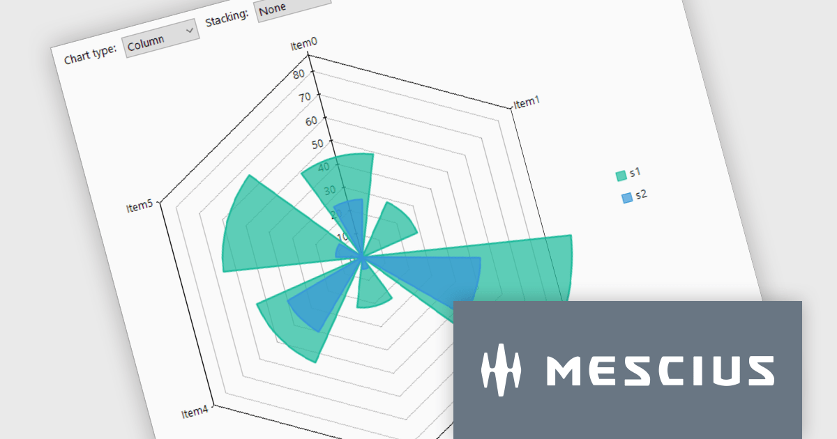 The ComponentOne Studio WinForms v2025 v1 update enhances its FlexChart control by introducing a new Column Radar chart type. FlexRadar now supports Column chart types with stacking options. This addition allows developers to visualize multivariate data in a more structured and intuitive format, particularly for applications requiring radial data representation such as wind rose charts. By aligning columns radially and enabling stacking, the chart makes it easier to compare the magnitude and distribution of values across categories, helping users identify patterns and trends more effectively. This new chart type expands the flexibility of radar-based visualizations, making it a valuable tool for scientific, engineering, and environmental data analysis.