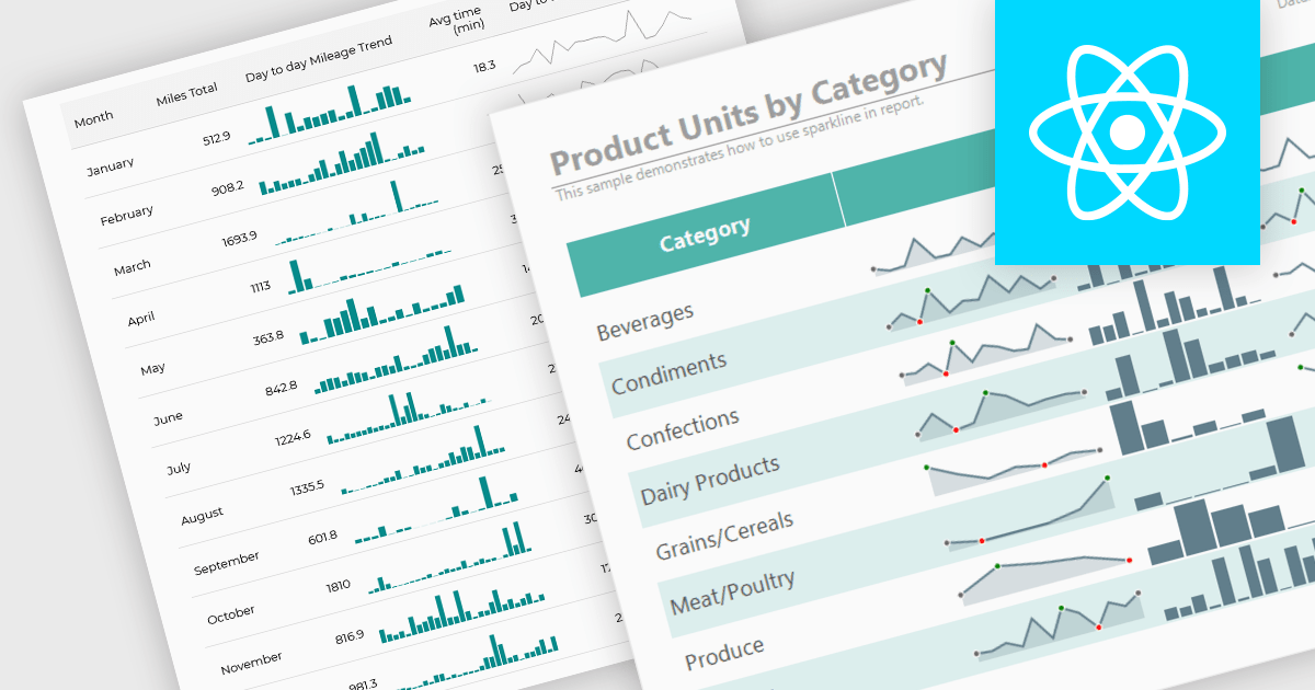 Several React reporting controls offer sparklines including: