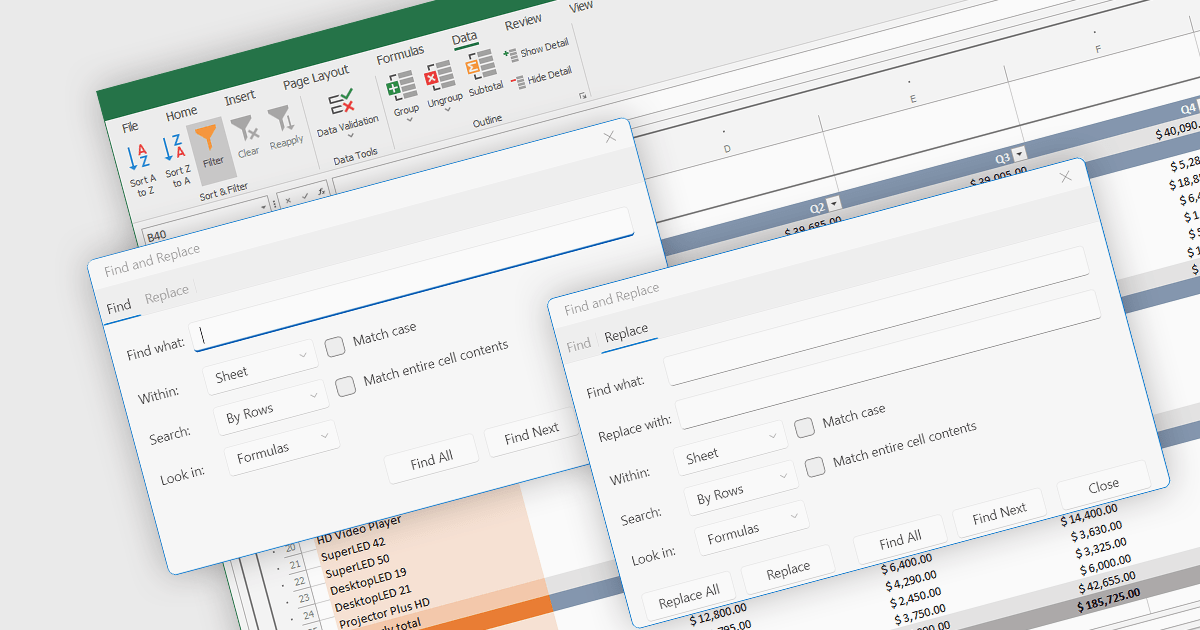 Several .NET 8 spreadsheet components allow you to find and replace, including: