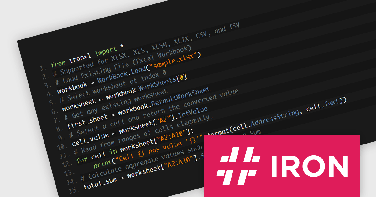 IronXL for Python via .NET by Iron Software is a Python Excel library designed to enable Python developers to manipulate, read and generate Microsoft Excel files easily by leveraging the .NET framework. It allows them to integrate Excel functionality into Python applications without requiring Microsoft Office or Excel Interop to be installed on the server or client machines. This standalone solution provides a comprehensive API for reading, creating, and editing Excel files (XLS, XLSX, XLSM, CSV, TSV, etc.) directly from Python code.