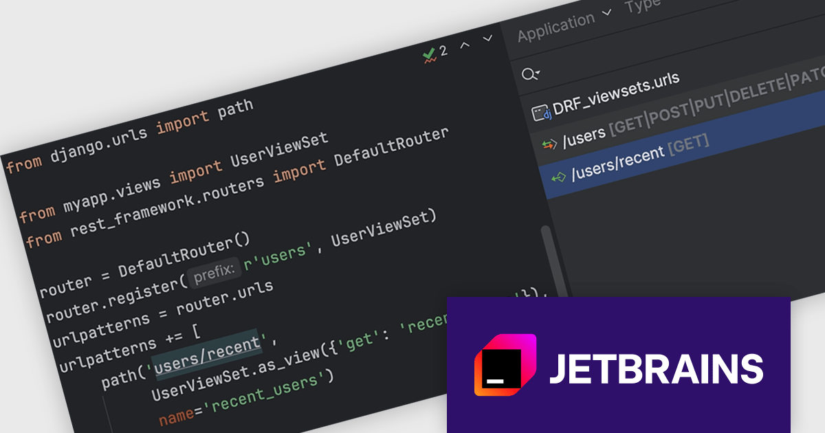 PyCharm 2024.1.2 offers enhanced support for Django REST Framework (DRF) viewsets and routers. Users can define not only function-based and class-based views in URL paths, but also leverage viewsets and view their corresponding actions within the tool window. This improved functionality extends to HTTP methods, allowing users to map them to viewset methods and see them displayed alongside the relevant routes, including custom methods not decorated with @actions. Additionally, routes without these decorators are now presented with their associated viewset methods for clarity.