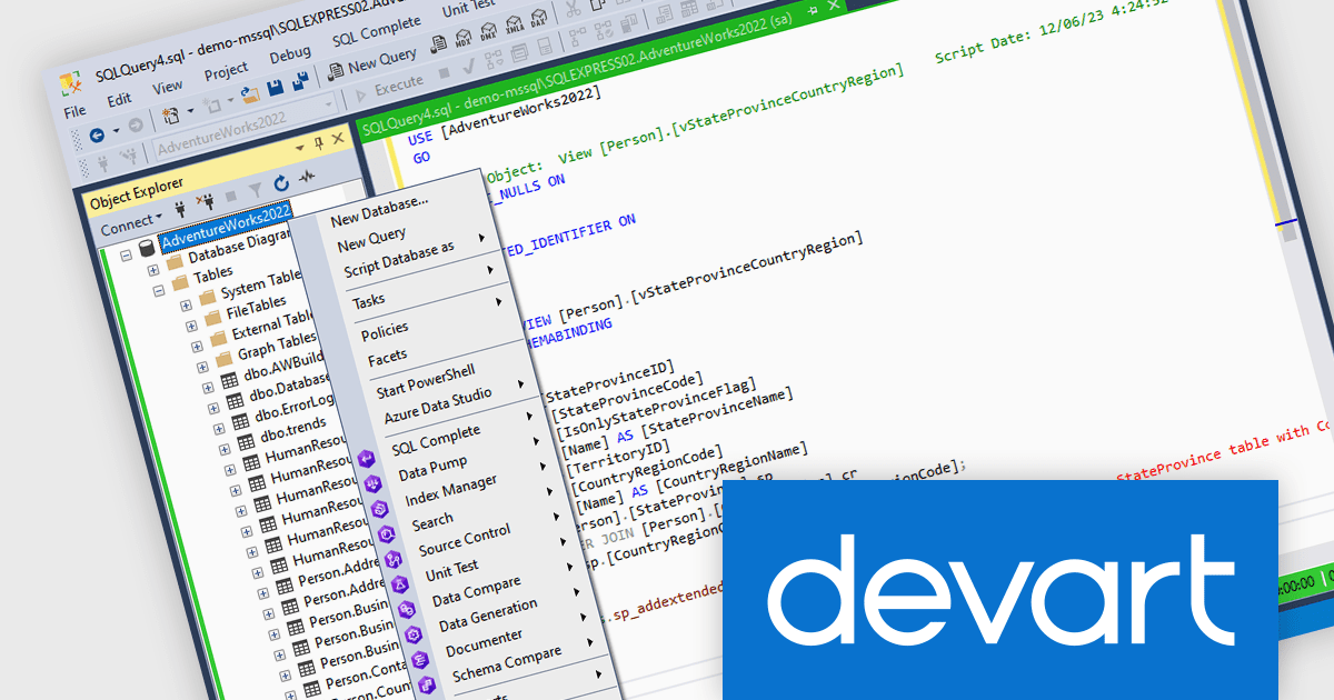The latest dbForge SQL Tools release adds integration support for Microsoft SQL Server Management Studio (SSMS) 20.x, allowing users to continue leveraging the extended functionality of dbForge SQL Tools alongside the latest features and security enhancements in SSMS 20.x, ensuring a smooth workflow and access to advanced database management capabilities.