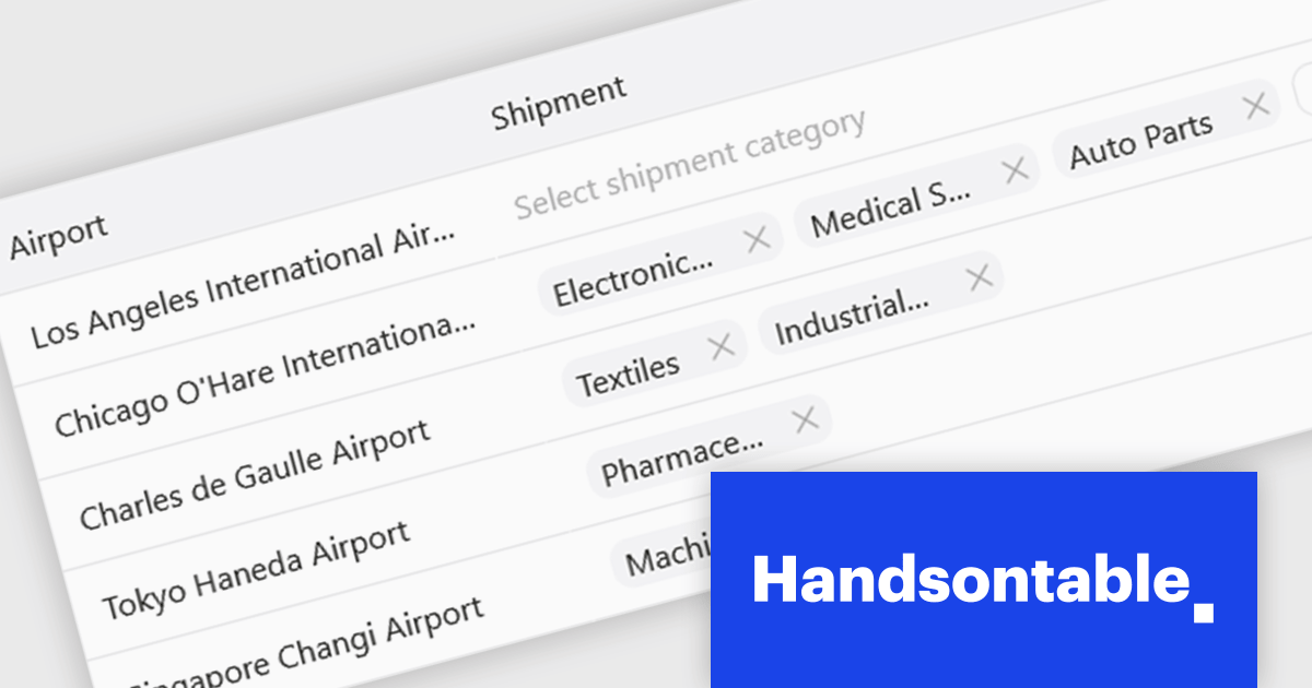 The Handsontable 17.0.0 update adds a new MultiSelect cell type that allows a single cell to hold multiple values, making it well suited for data such as tags, user roles, product categories, or shipment contents. Instead of restricting entries to one option, users can choose any number of items from a dropdown interface that includes search and filtering capabilities for quickly locating options. Full keyboard navigation ensures efficient interaction for power users.