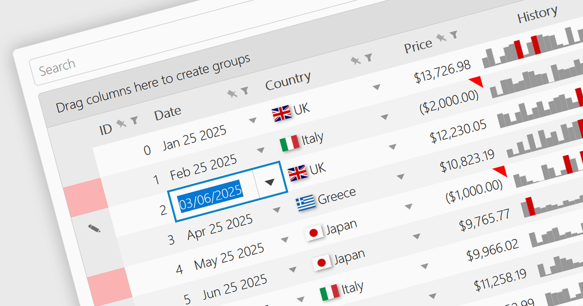 A date/time cell type in a JavaScript Grid control lets developers manage temporal data more effectively by treating input as actual JavaScript Date objects rather than plain text. This enables built-in features like calendar popups, time pickers, and structured output formats such as "09/09/2025" or "Sep 9 2025", making it easier for users to interact with the data accurately. It's especially useful in applications that rely on scheduling, activity logs, or time-driven reports. Most modern grid libraries also support localization, formatting, and input validation to ensure the cell behavior fits seamlessly with the application's design and data standards.