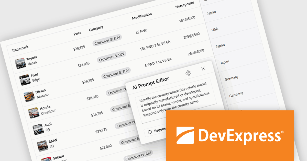 The DevExtreme Complete 25.2 release brings AI Columns to its DataGrid and TreeList components, allowing developers to infuse artificial intelligence directly into their data presentation layers. AI Columns use component data and custom prompts to generate contextually relevant values - automating tasks like categorization, summarization, translation, and recommendation. Whether grouping records by priority, detecting sentiment, or transforming addresses, this feature opens up new ways to interact with and analyze structured data, making these components powerful tools for AI-assisted data exploration.