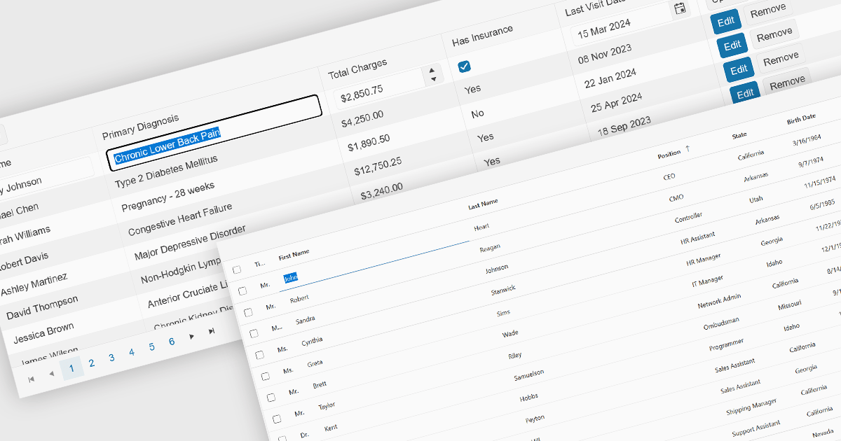 Inline editing is an essential feature of modern grid components, allowing users to create, update, and validate data directly within tabular views. By enabling edits in place, without navigating away from the grid, these features support faster data entry and improve usability in data-intensive applications such as administration panels, financial systems and line-of-business tools.