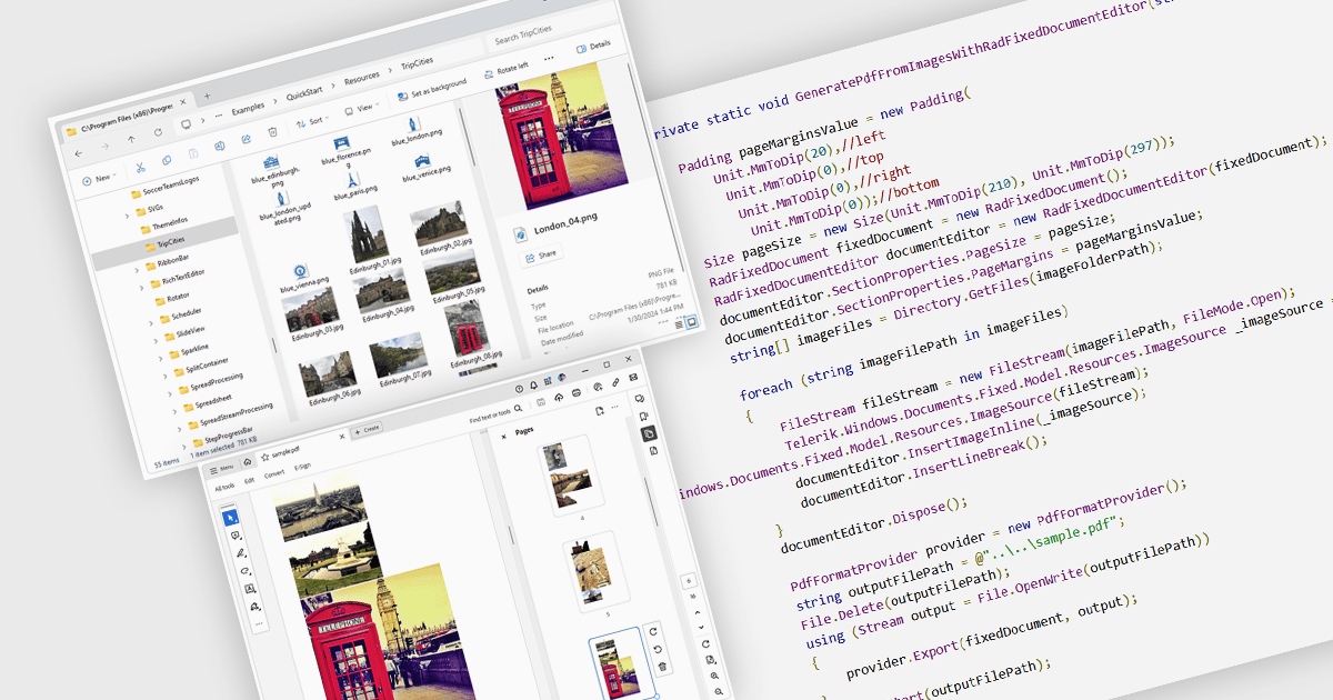 Several WPF PDF components allow you to convert images to PDF, including:
