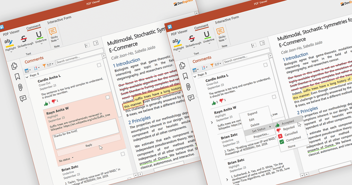 A sticky note in a PDF Viewer is a digital annotation tool that lets users attach comments directly to specific areas of a document. It offers a simple way to share feedback, suggestions, or reminders without changing the original content. Sticky notes are especially useful for reviews and collaboration, helping teams exchange feedback and track revisions efficiently. With a centralized Comments pane, all sticky notes and replies are displayed in one place, making it easy to view, manage, and organize discussions across the document.