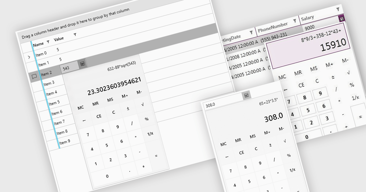 Several WPF data editor collections offer a dropdown calculator, including: