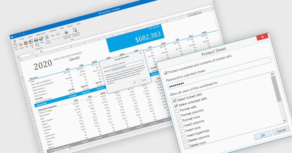 Several WPF spreadsheet components offer security features, including: