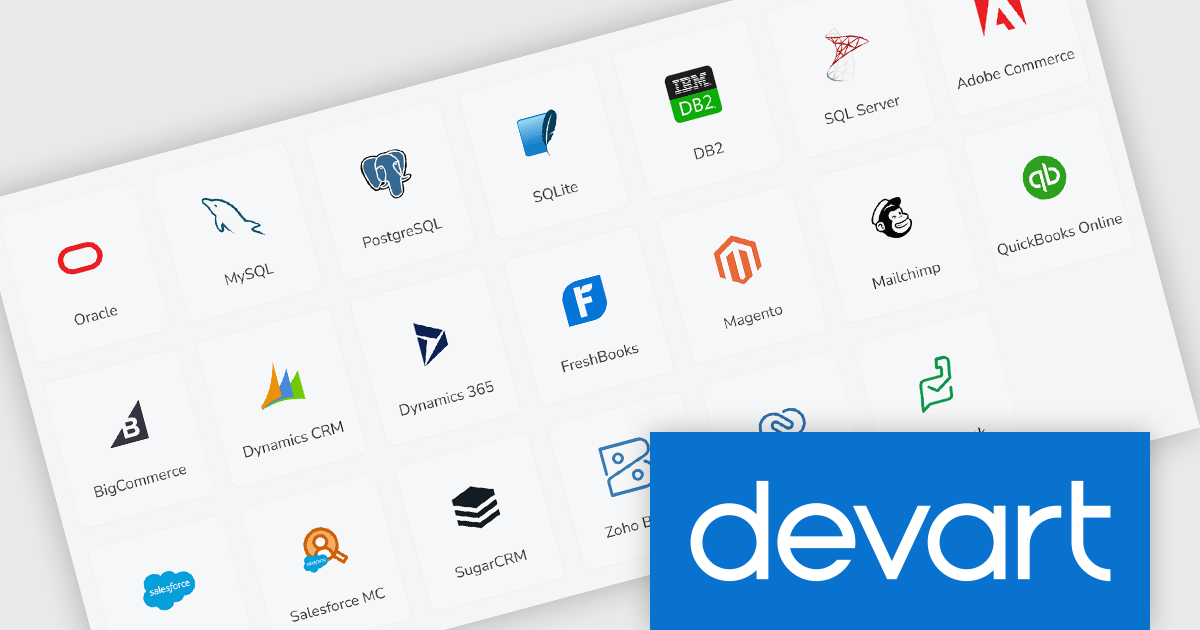 Devart dotConnect is a range of high-performance ADO.NET data providers for various databases and cloud applications, enabling efficient data connectivity for building web and mobile applications. It provides high-performance connectors for databases such as SQL Server and Oracle, as well as Cloud services such as Salesforce and QuickBooks Online.