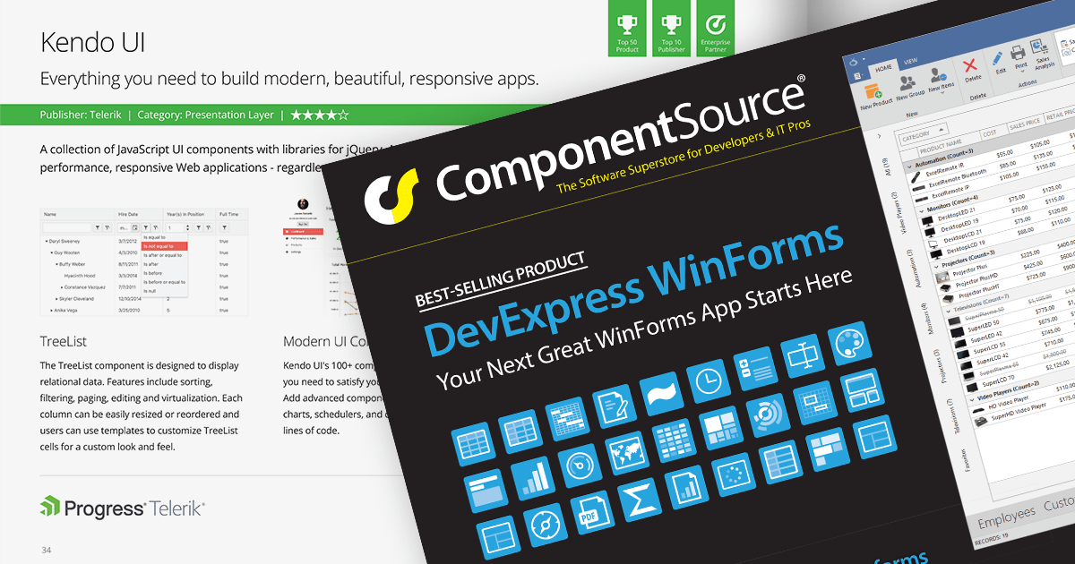 ComponentSource congratulates DevExpress on winning these prestigious awards, and is proud to continue their long-standing partnership in the future.