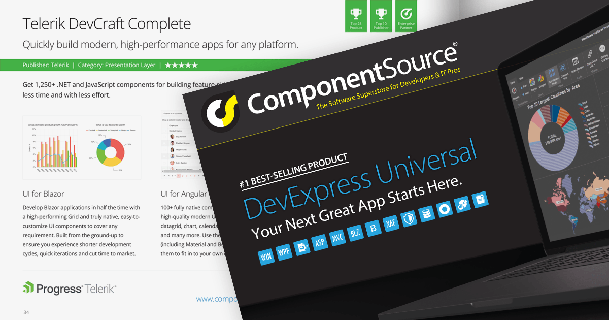 Over the last 27 years, ComponentSource has built a comprehensive marketplace to help its users discover, compare and buy Enterprise-grade software components and tools. The ComponentSource Catalog showcases a range of products in a easy-to-digest print publication.