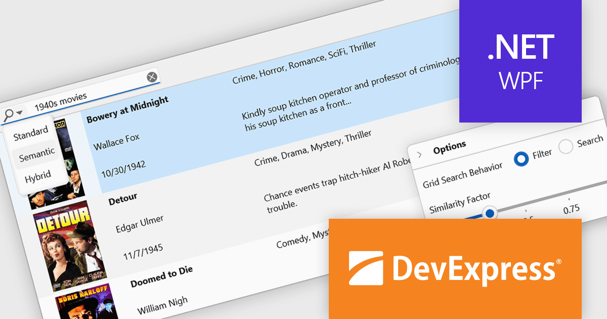The DevExpress WPF v25.1 update introduces a new semantic search capability for the Data Grid that leverages Natural Language Processing (NLP). Rather than depending solely on exact keyword matches, it converts user input into vector representations. These representations are then analyzed through a similarity algorithm, allowing the system to identify and rank results based on contextual meaning. This update significantly improves the quality of search results, especially in datasets where users may phrase queries in varied or imprecise ways. It’s particularly beneficial in applications that deal with complex or user-generated content, offering developers a more natural and adaptive search mechanism.