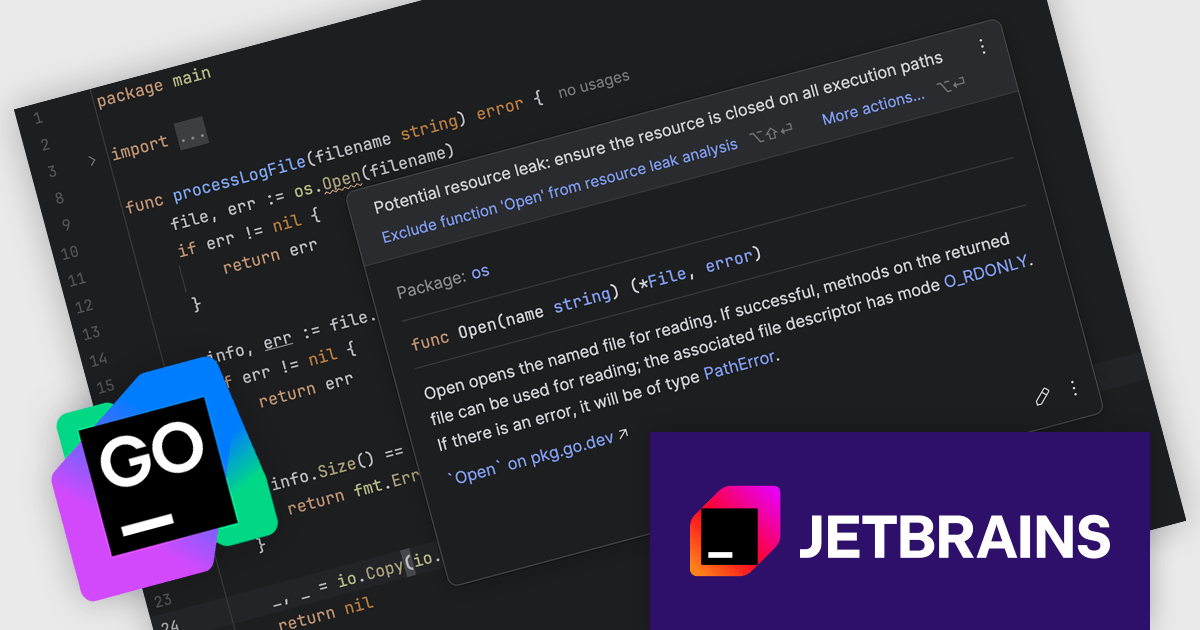 The GoLand 2025.3 update introduces early resource leak detection to help developers identify resources such as files, sockets, and network connections that may not be closed correctly after use. The local inspection analyzes code in real time and displays warnings directly in the editor, allowing issues to be fixed immediately while the relevant context is still visible. This helps reduce time spent debugging runtime issues, lowers the risk of performance degradation or resource exhaustion in production, and improves overall code reliability by encouraging consistent resource management practices.