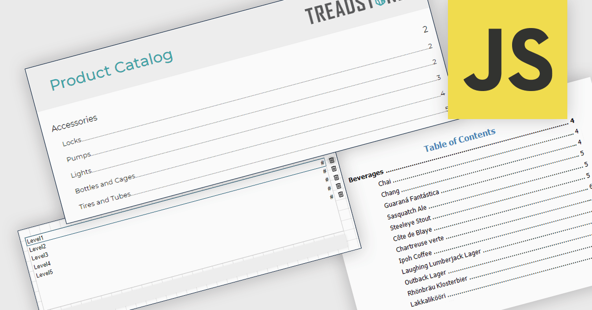 Several JavaScript reporting components allow you to add a table of contents, including: