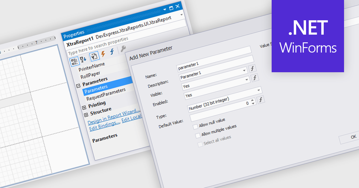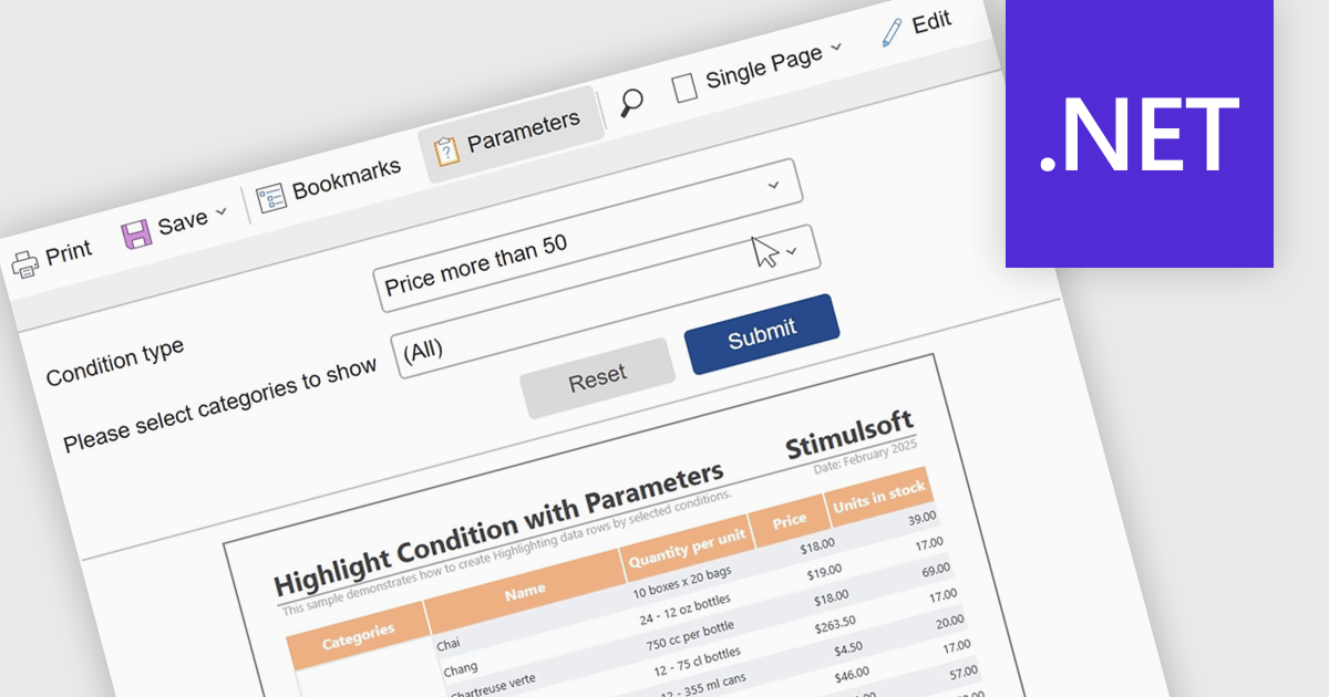 Several .NET reporting components include support for parameters: