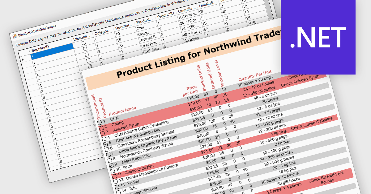 Several .NET Reporting controls offer IList data connectivity including:
