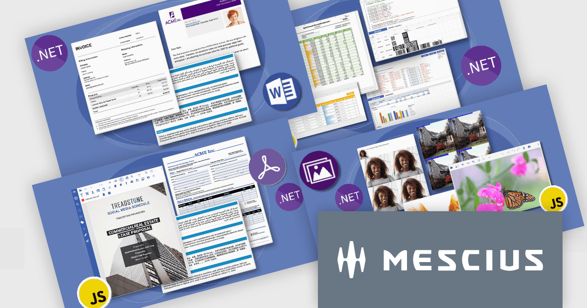 MESCIUS Document Solutions is a comprehensive API library product line that enables developers to work with a variety of documents, including Microsoft Word and Excel, without requiring that you have those applications installed. You can create, load, edit, and save these documents from within your applications with no external dependencies.