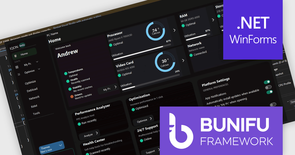 Designing a system performance monitor UI using Bunifu UI WinForms allows software developers to create modern, visually clear, and responsive monitoring interfaces while continuing to work within the familiar WinForms framework. The framework provides ready-made, highly customizable controls and smooth interaction behaviors that simplify building professional dashboards for real-time system metrics, reduce reliance on custom UI rendering and styling code.
