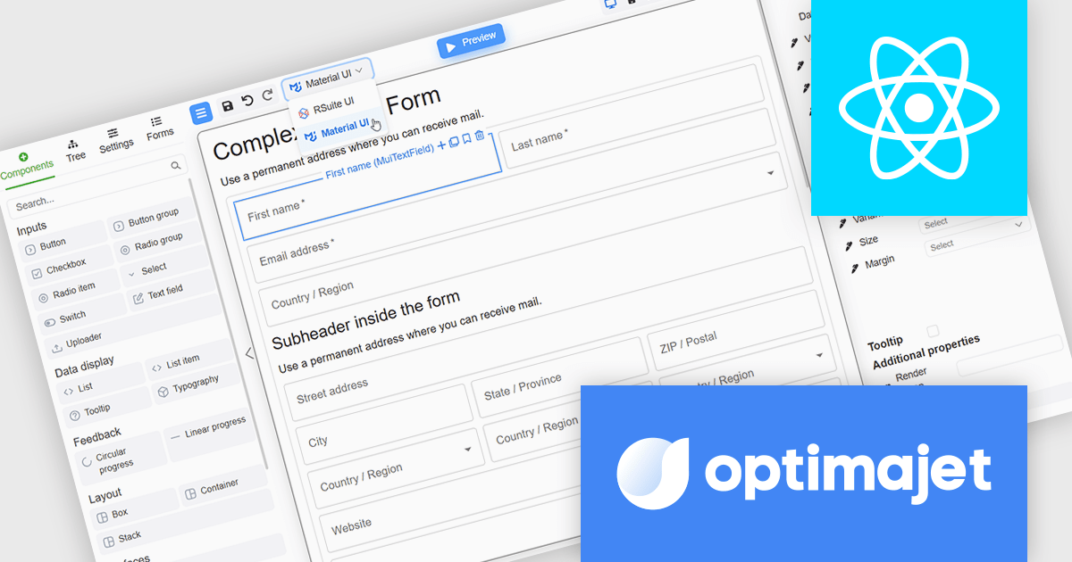 The Optimajet FormEngine v7.10.0 update introduces integration with the Material UI components library, allowing developers to build and render React forms using a widely adopted and actively maintained UI framework. This integration improves form development by reducing reliance on custom components and manual styling, while promoting consistent layout, behavior, and accessibility across applications. By aligning FormEngine with Material UI design patterns, development teams can more easily integrate forms into existing React projects, improve maintainability, and deliver modern user experiences with less effort.