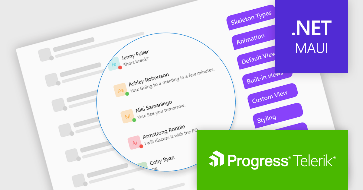 The Telerik UI for .NET MAUI 2025 Q4 update introduces the new Skeleton Component, which enables developers to present structured loading placeholders that match the layout of their final content. This improves perceived responsiveness by keeping the interface stable while data is retrieved, reducing layout shifts and allowing users to understand the expected structure of the page before it fully renders. With built-in templates for common UI patterns, the component improves implementation and helps teams deliver more consistent, polished loading experiences across their applications.