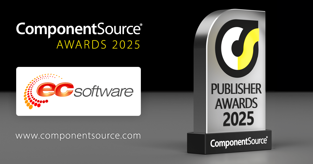 A ComponentSource concedeu à EC Software um prêmio Top 100 Publisher Award no ComponentSource Awards anual de 2025.