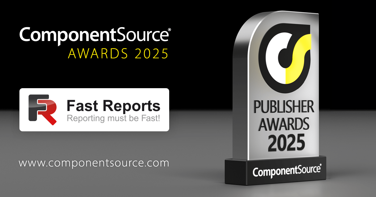 Congratulations to Fast Reports on winning a Top 50 Publisher Award in the annual ComponentSource Awards for 2025. We're pleased to once again recognize Fast Reports' ongoing excellence in developing reporting solutions.
