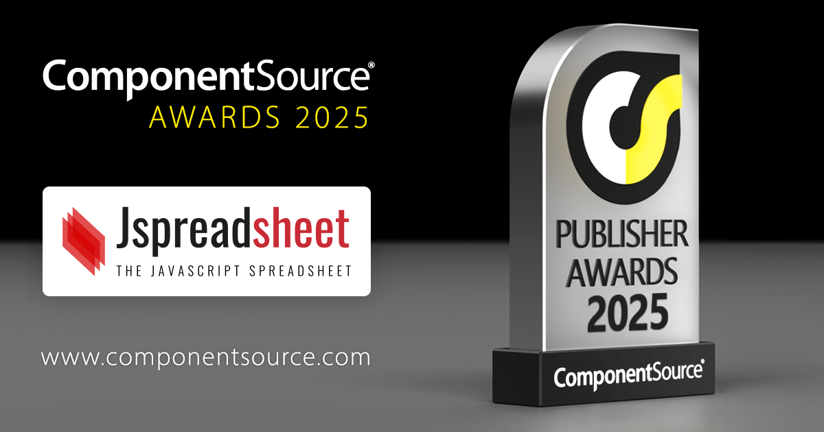 Congratulations to Jspreadsheet on winning a Top 100 Publisher Award in the annual ComponentSource Awards for 2025. We're pleased to recognize Jspreadsheet's ongoing excellence in developing intuitive and efficient JavaScript components.