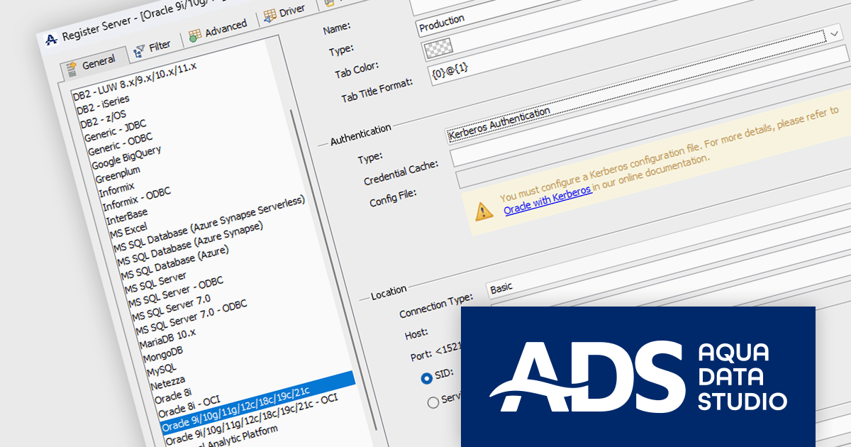 The Aqua Data Studio v25.5 update introduces Kerberos support for Oracle, allowing developers to authenticate to Oracle databases using enterprise-managed Kerberos credentials instead of traditional username and password methods. This enhancement aligns Aqua Data Studio with environments that already use Kerberos-based authentication, ensuring compatibility with centralized identity management practices. Once configured it provides a standards-based authentication option that integrates securely with existing corporate infrastructure.