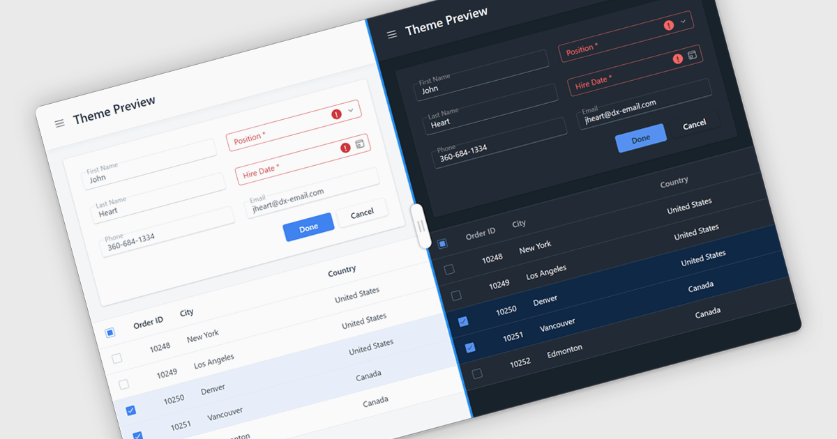 UI suite theming allows developers and designers to define a unified visual style across all components. By controlling colors, typography, spacing, and other design elements from a central configuration, teams can ensure consistency, maintain brand identity, and improve updates. Theming also enables effortless customization, allowing teams to align a product’s look with branding, support light and dark modes, or adapt interfaces for different clients. This approach accelerates development and enhances user experience, making applications feel polished, cohesive, and professional. Common use cases include enterprise dashboards, multi-brand SaaS platforms, and cross-platform applications that require a consistent appearance on web, desktop, and mobile.