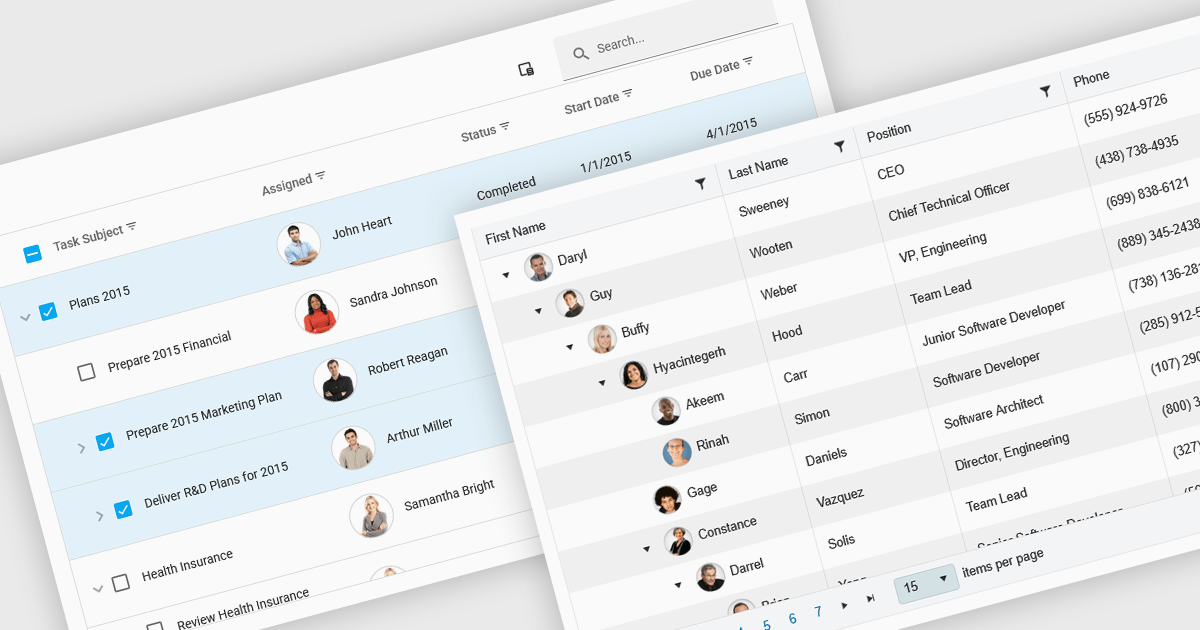 TreeLists in UI suites are specialized components designed to display hierarchical, self-referencing data in a tabular format with expandable and collapsible rows. They combine the structure of a tree view with the functionality of a data grid, offering built-in features such as sorting, filtering, editing, and paging. This makes them ideal for scenarios where complex relationships must be presented clearly, such as organization charts, project task structures, file directories, or product categories. Their intuitive layout and powerful data management capabilities help streamline workflows and enhance the user experience in enterprise and business applications.