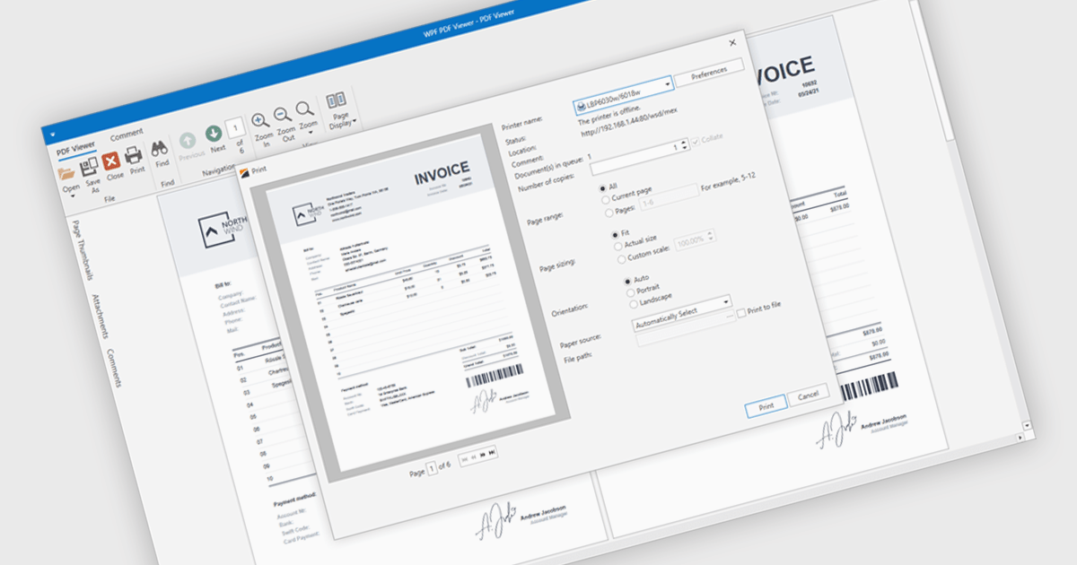 PDF printing within a PDF Viewer allows users to print documents directly from the viewing interface without needing to open external applications. This built-in functionality provides quick access to print options such as paper size, orientation, and scaling while maintaining the document’s original layout, fonts, and graphics. It ensures professional, high-quality output and a consistent user experience across different printers and devices. Common use cases include printing invoices, reports, forms, and technical documentation directly from desktop or embedded applications, helping users save time, reduce complexity, and improve productivity in document-heavy environments.