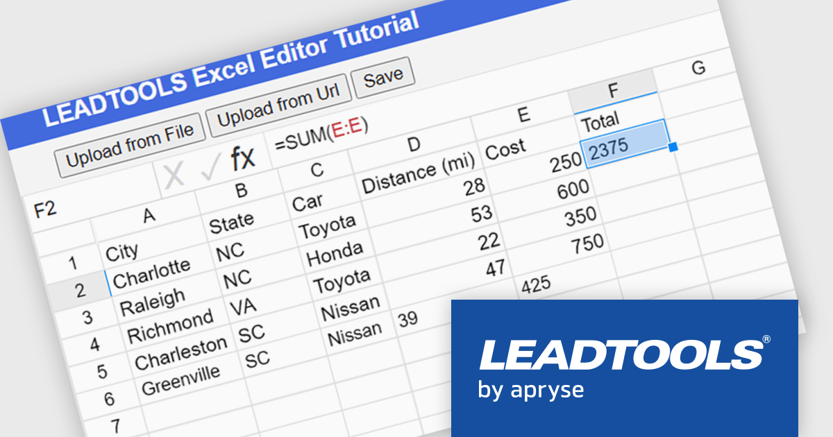 In this blog post (the second in a 3-part series on the Excel SDK), LEADTOOLS Associate Marketing Web Developer Ryan Fritz shows you how to use the new Excel Web Editor to load an XLS/XLSX file, implement a common Excel function, and then save the updated file.