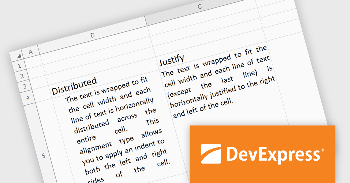 The DevExpress Office File API 24.1 release introduces justified and distributed text alignment to the Spreadsheet Document API. This means that text can now be spread evenly across the entire width of the cell (justified) or with a slight indent on both sides (distributed) - similar to how text appears in word processing software. These formatting options are preserved when exporting the spreadsheet to PDF, allowing users to maintain a consistent presentation across different document formats.