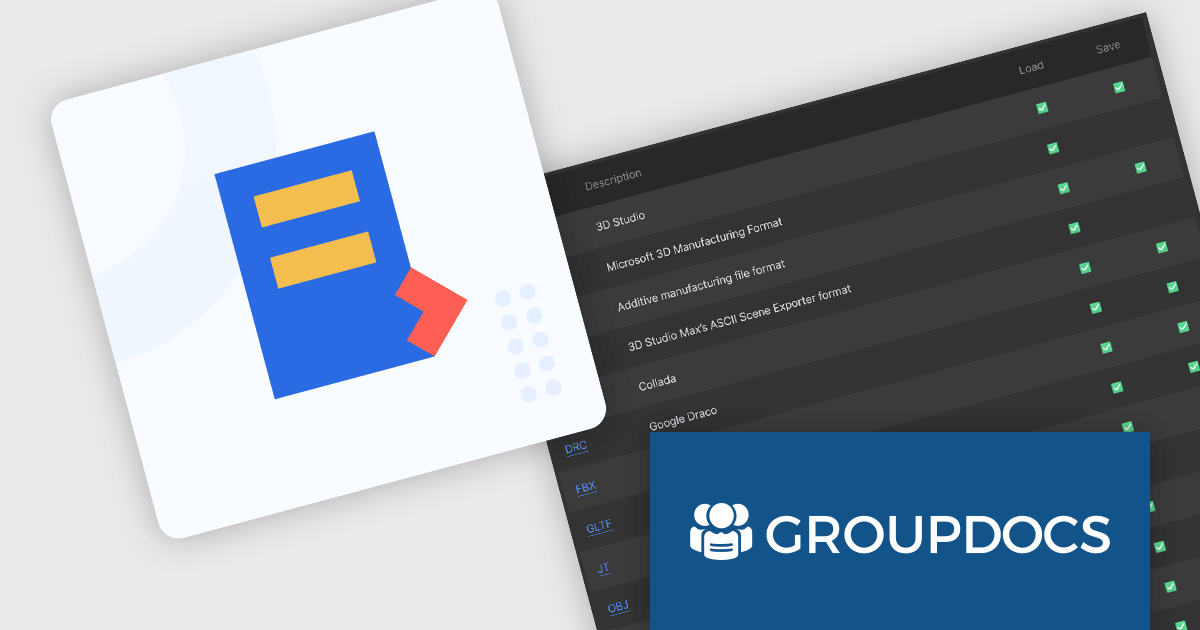The GroupDocs.Conversion for .NET V24.1 release adds the ability to convert from CAD formats to IFC, GLB, OBJ, 3DS and U3D. Converting to lightweight formats like GLB and OBJ facilitates easy 3D model viewing on web platforms and mobile devices, increasing project transparency, and making it easier to collaborate across a diverse range of software.