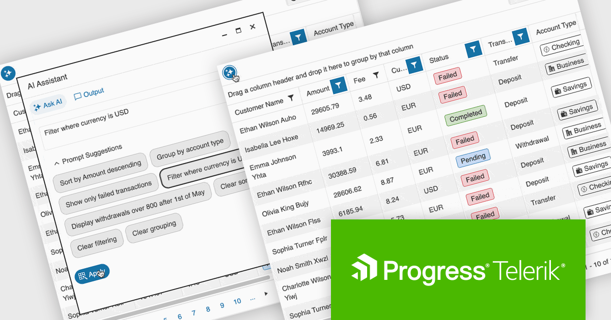 The latest update to the Telerik UI DataGrid introduces AI-driven controls that respond to natural-language prompts, making it easier for users to work with complex datasets. Users can now reorder, resize, and toggle column visibility just by describing what they want. Pagination, row selection, and data export to Excel, PDF, or CSV formats can also be handled through conversational input, reducing clicks and improving accessibility for both technical and non-technical users.