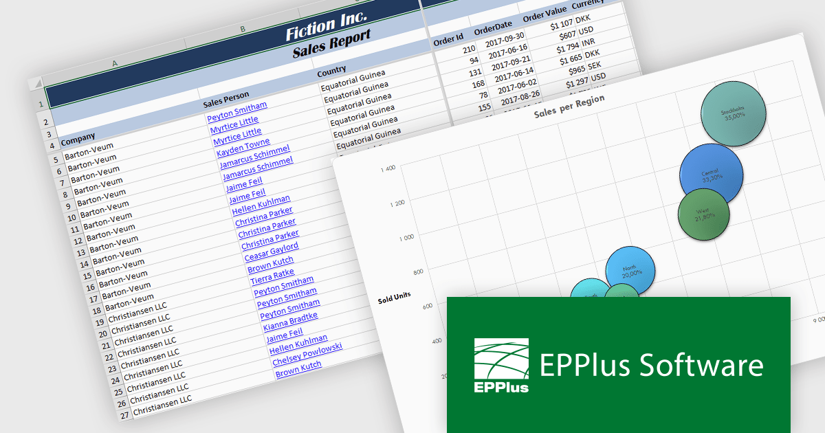 EPPlus is a powerful and versatile .NET library for managing and manipulating Microsoft Excel files using the Office Open XML (OOXML) format. It is a lightweight and efficient library that is easy to use and can be integrated into a wide range of applications. It allows developers to create, read and modify spreadsheets without dependencies on any other library. Features include pivot tables, styling, VBA/Form controls, conditional formatting, charts, tables, formula calculation, data validation, pictures/shapes, and more.