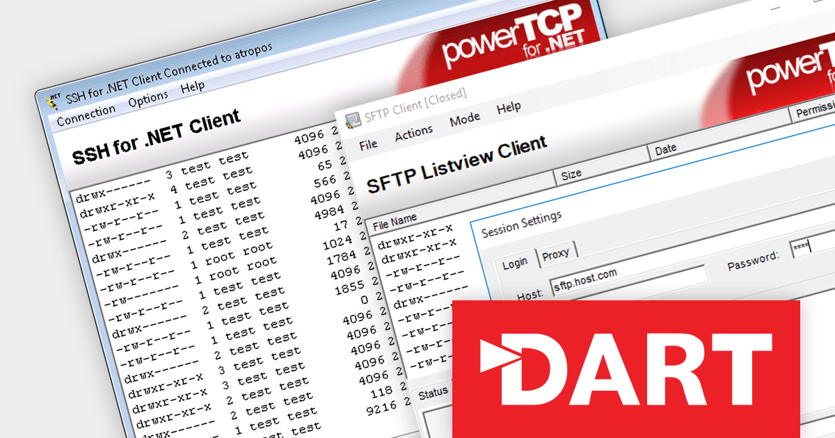 PowerTCP SSH and SFTP for .NET by Dart Communications is a comprehensive suite of SSH-2 and SFTPv3 components for the .NET Framework, providing developers with the tools they need to add secure remote access and file transfer capabilities to their applications.