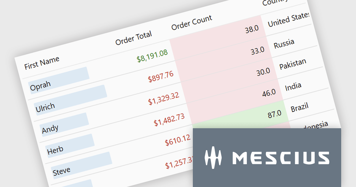 The ComponentOne Studio Enterprise 2025 v2 update adds a conditional formatting rules engine to FlexGrid for WinUI. This enables validation-driven formatting and data bars, allowing developers to highlight invalid values, enforce input consistency, and make comparisons directly within the grid. The update also introduces word-wrapped column headers, improving readability for longer labels and supporting more compact, maintainable layouts.