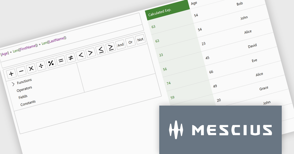 The ComponentOne Studio Enterprise 2025 v2 update introduces a modern WPF ExpressionEditor that enables developers to integrate a complete runtime formula-building experience directly into their applications. It allows end users to create, edit, and validate logical expressions using familiar Visual Studio–style code completion, syntax highlighting, and real-time error reporting, while also providing a set of built-in operators, constants, and aggregate, logical, mathematical, and conversion functions. By offering both a lightweight expression text box and a full-featured formula panel, the update reduces the need for custom expression editors, shortens development time, and improves the reliability and usability of data-driven application logic.