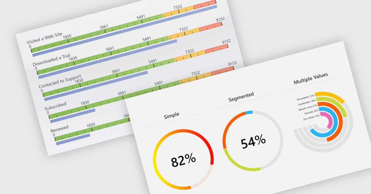 Gauges are specialized charting components used to visually display numerical values within a predefined range, often in formats such as radial, linear, or digital meters. They are commonly found in dashboards and monitoring tools, where their primary function is to provide immediate visual feedback on performance indicators or system metrics. Gauges are particularly useful for clearly communicating real-time data, allowing users to quickly assess the current state of a metric to determine whether a value is within acceptable limits or requires attention.