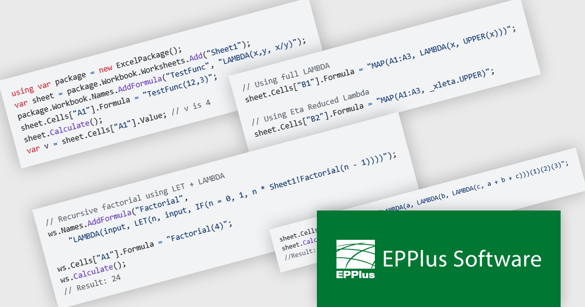 The EPPlus v8.2.0 update introduces support for eight new LAMBDA-based functions, giving developers greater flexibility and control when working with Excel workbook calculations. With these additions, you can now define custom functions directly in the workbook, streamline array transformations, apply operations by row or column, and handle iterative or conditional logic more efficiently. This enhancement reduces the need for repetitive formulas or external code, enabling cleaner, more maintainable spreadsheets that better align with modern programming practices.