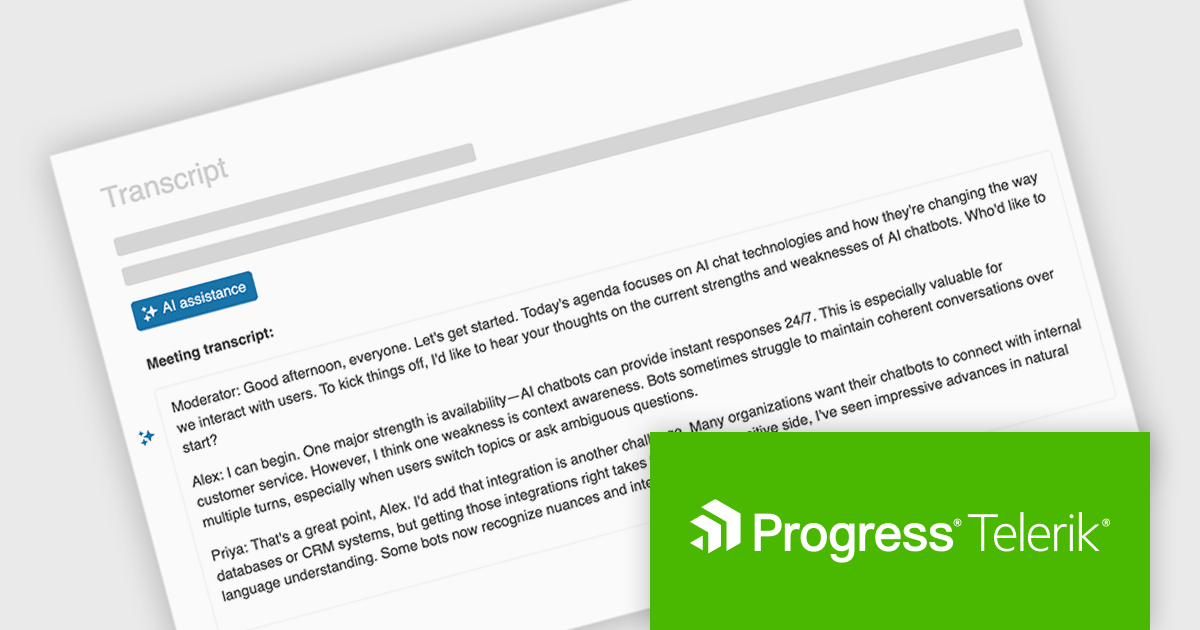 The Telerik UI for ASP.NET MVC 2025 Q3 update introduces In-Context AI Assistance with the new Inline AI Prompt, enabling developers to integrate AI interactions directly into their applications through a lightweight, popup-based interface. This feature allows users to send prompts and receive streaming responses without leaving their workflow, supports inline editing for refining outputs, and handles chunked responses for more efficient delivery of long-form content. In addition, built-in events provide flexibility for customizing the behavior of the AI prompt and responding to user actions, making it easier to deliver tailored, intelligent experiences within ASP.NET MVC applications.