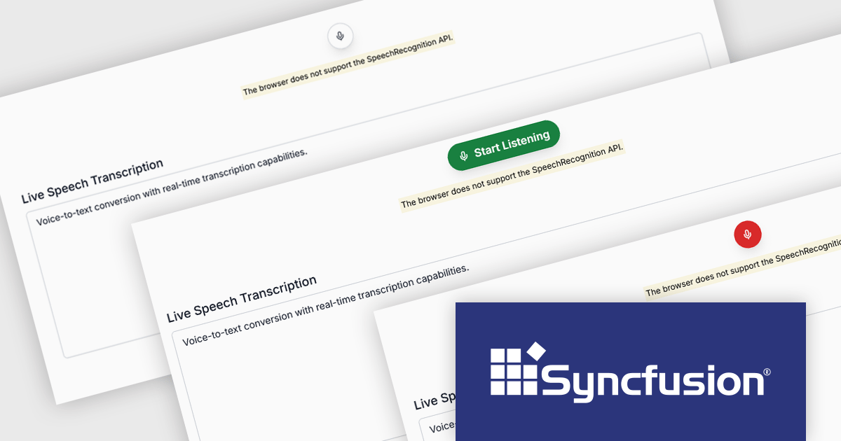 The Syncfusion Essential Studio ASP.NET MVC 2025 Volume 2 update introduces the new SpeechToText control, enabling developers to integrate real-time voice-to-text transcription into their web applications using the JavaScript SpeechRecognition API. This feature allows users to dictate text directly via their device's microphone, with options for live or finalized transcription output. Developers can tailor the control's behavior and appearance through customizable properties such as language selection, interim results, and tooltip visibility. Enhanced styling support also lets you personalize the microphone button using predefined CSS classes and configure it to display both icons and text, ensuring a flexible and accessible user experience.