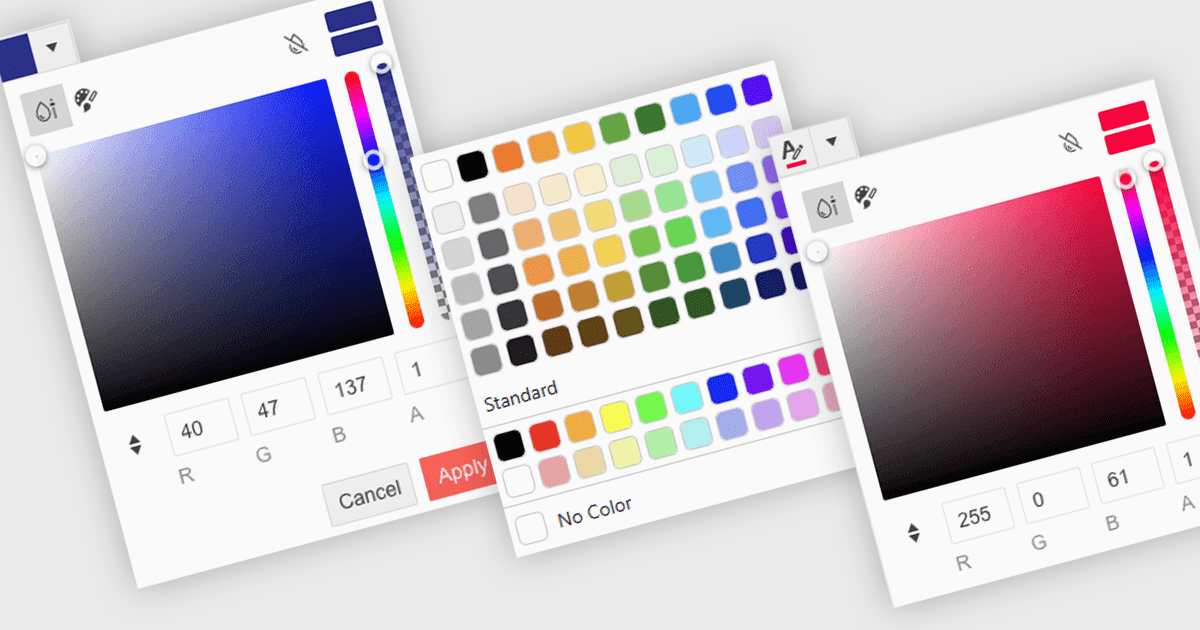 Several .NET Blazor data editors can provide you with a color picker, including: