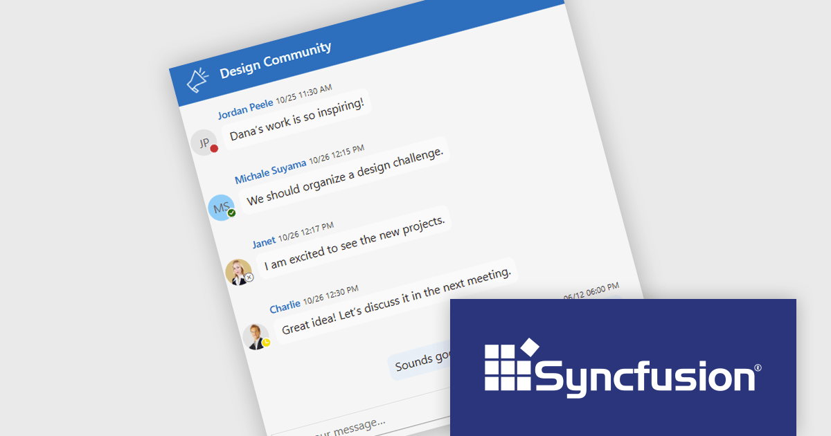 The Syncfusion Essential Studio ASP.NET Core 2025 Volume 2 update introduces chat UI status indicators that enhance user presence awareness by displaying real-time availability states such as online, offline, busy, and away. This feature allows developers to build more context-aware chat applications, where users can make informed decisions about when to initiate conversations or manage interactions based on presence.